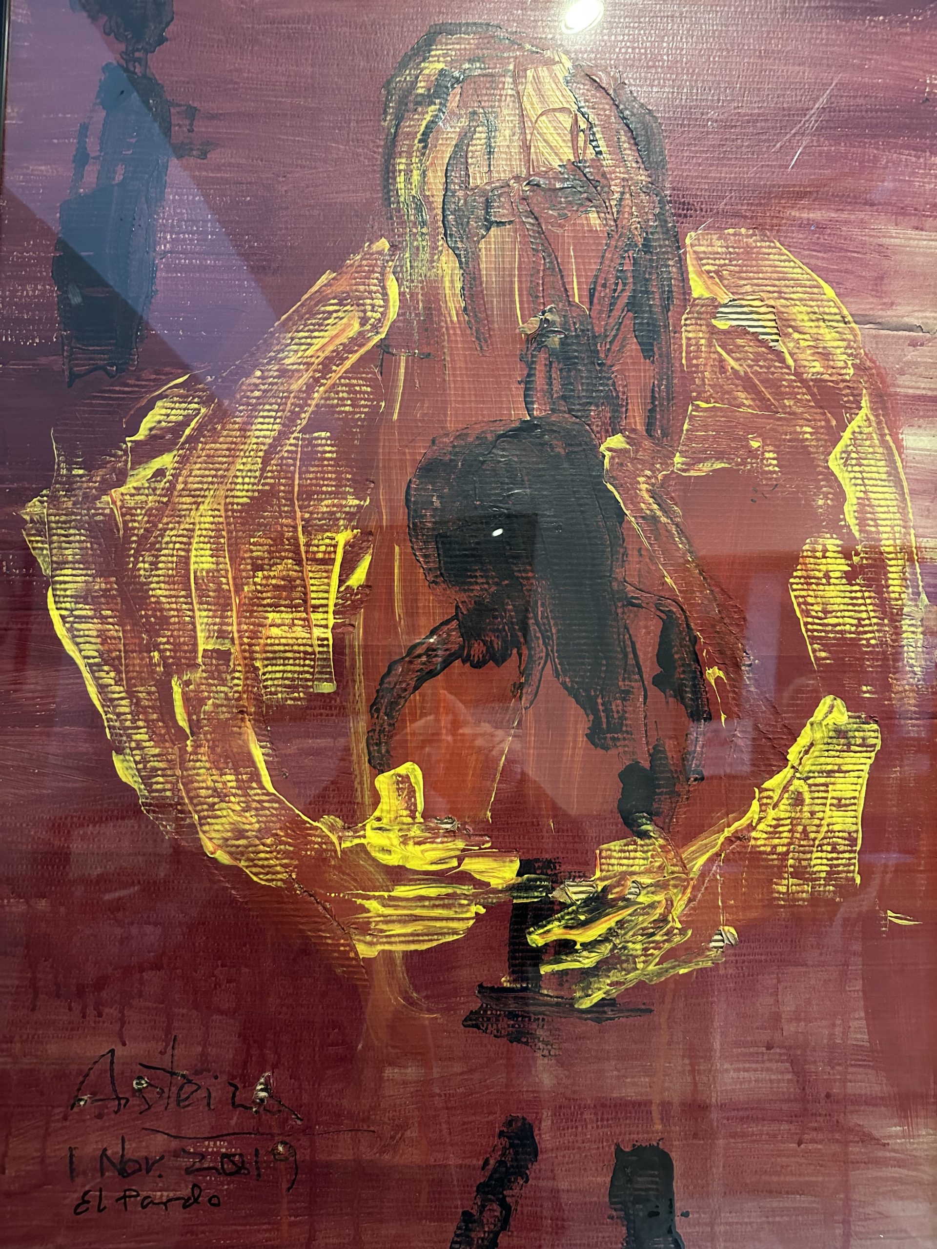 Este abrazo del padre, aun con los reflejos de quien saca la foto, es de #oteiza y está entre una docena de variaciones sobre el mismo tema: la eucaristía. Me lo encontré en un retiro, en la casa de capuchinos de El Pardo, en uno de los pasillos. La belleza del arte siempre sale a nuestro encuentro de manera inesperada, aún en los lugares en los que no pensábamos encontrar ningún resquicio de arte. Allí están estas pinceladas que acogen el abrazo del padre como nos acoge a nosotros la belleza.